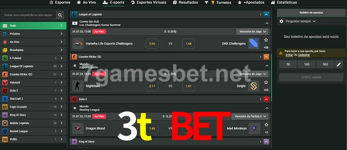 O 3t bet oferece uma grande seleção de opções de apostas em e-sports com probabilidades competitivas